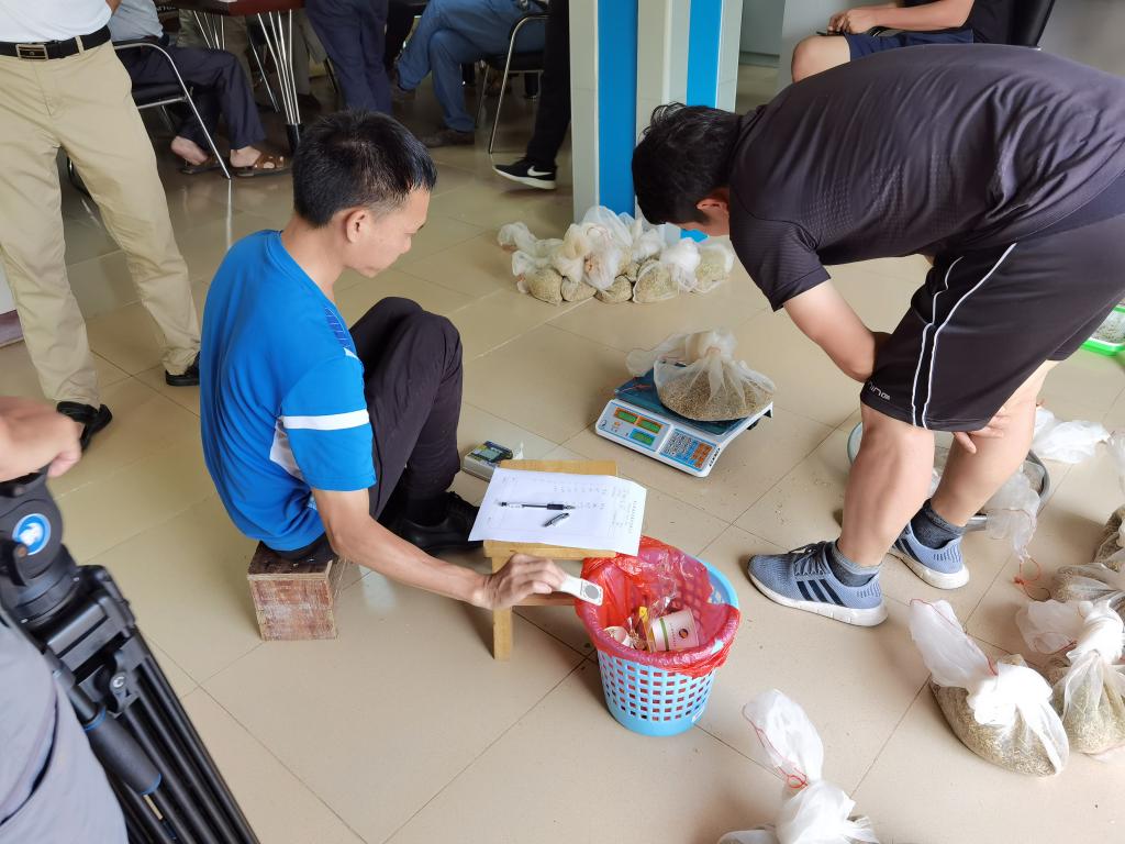 公司台山市海宴镇海水稻基地2020年共开展虾稻种养一体化试验示范4000亩,本次第三方机构评价胜籼1号和胜籼2号2个海水稻品系,每个品系种植面积为100亩。在第三方机构的严密组织下,专家组本着“客观,真实,公开,公正”的原则,严格按照全国粮食高产创建测产验收办法和标准独立开展工作,在每块田采用对角线5点取样法,每点用取样规取样1平方米,每个品种共计实割10平方米,脱粒、称量、测试水分和估算杂质,经专家组测定,最终产量为胜籼1号田块亩产236.0公斤,胜籼2号田块亩产418.3 公斤。