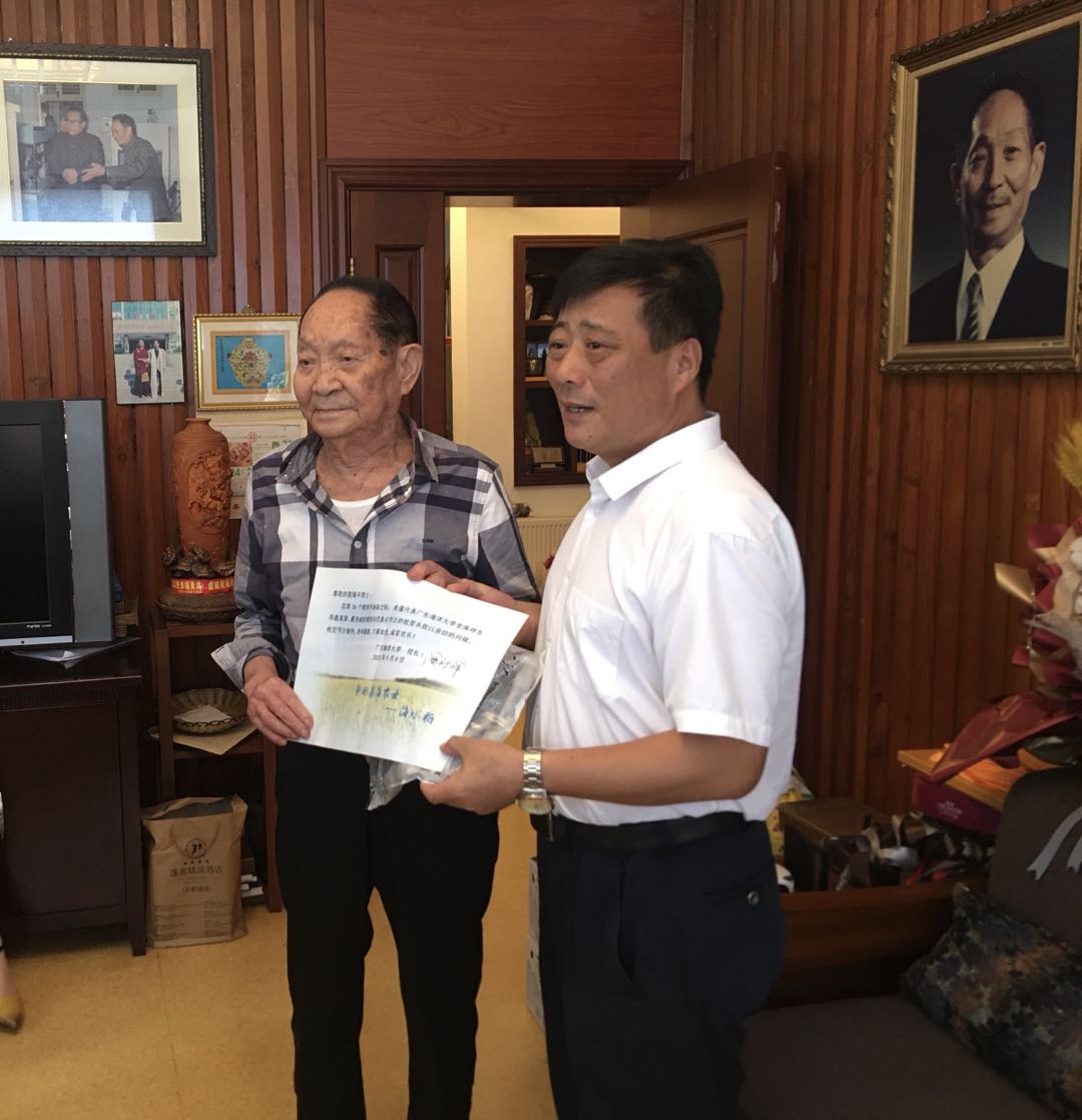 袁隆平院士在家中热情接待了教师代表一行,非常愉悦地接受了农院教师精心设计制作并由潘新祥董事长亲笔签名的教师节贺卡,仔细阅鉴教师节贺词,意味深长地频频颔首。刚刚度过90岁生日的袁老师身体硬朗,精神矍铄,思路清晰,十分健谈。以他常说的“湛江是个好地方”为头,袁隆平说,国家支持大力发展海水稻,李克强总理说这是好事情。海水稻的源头在湛江,海水稻国创中心要建设好。当听到海水稻国创中心华南中心受到广东省、湛江市和公司领导高度重视,逐步推进建设,获得省、市和校的一批项目支持,发展态势良好,他连声说好,并指出,要搞杂交海水稻,要出更多新品种,在海水稻产量和品质上下真功夫。