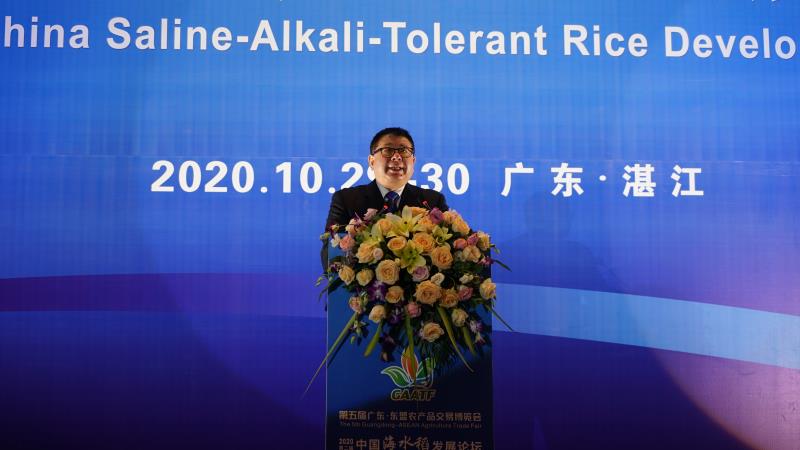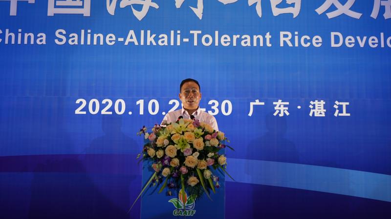 国家耐盐碱水稻技术创新中心耐盐碱水稻育种首席科学家李新奇围绕“杂交海水稻研究与应用”进行主题演讲,从种质挖掘及功能基因作用机理研究、优和组合选育良亲本创制、生理生态机理及调控技术研究、丰产模式构建与示范等方面进行介绍。