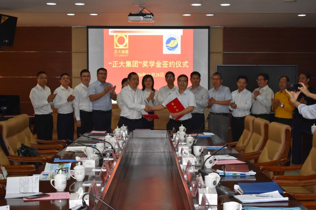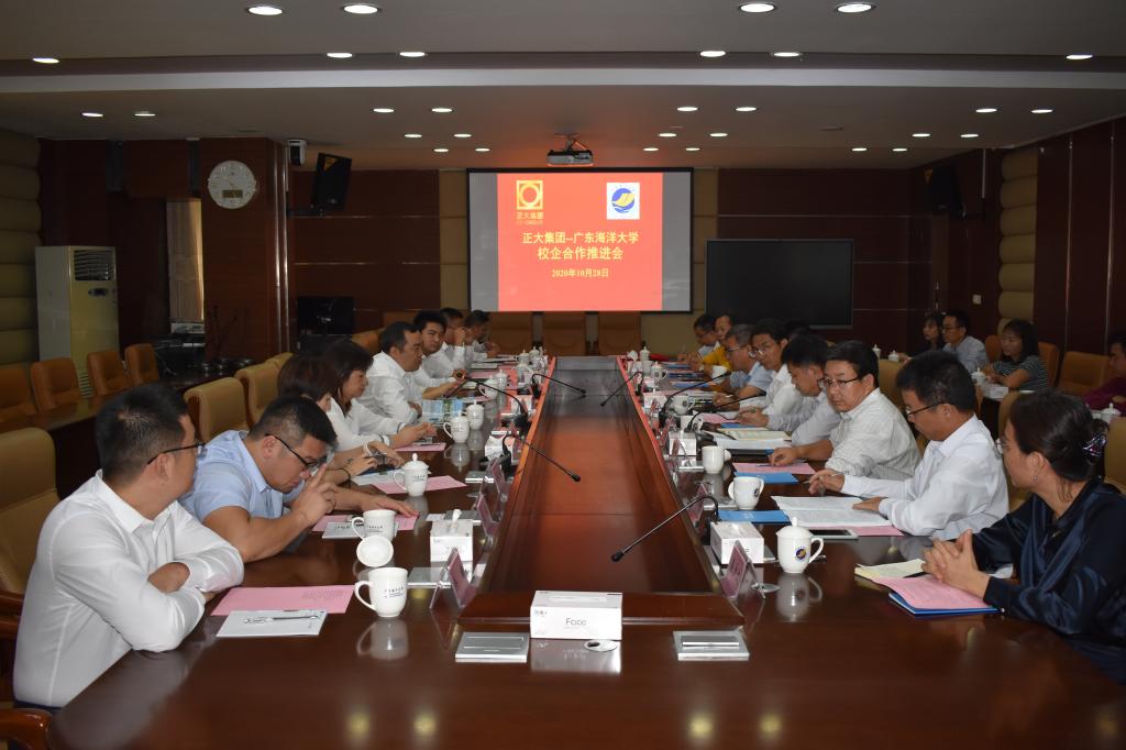 10月28日上午,在湖光校区行政楼五楼会议室, 公司与正大集团举行了校企合作推进会,并再次签订设立“正大奖助学金”。正大集团中国区招聘总监袁园、中南区人事总监郑苹、广东区副总裁顾昝等一行11人,公司党委林晓敏副书记、继续教育学院经理安立龙教授、食品科技公司党委丁永成副书记、公司党委陈嘉文副书记、副经理殷学贵教授、马驿教授、管理公司党委吴少文副书记、副经理陈伟教授出席会议。会议由员工工作部尹喜部长主持。