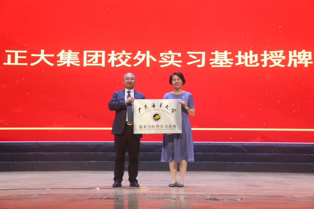 会中,正大杯双创大赛上届冠军队长龙啸天做了参赛经验及个人的感言分享;水产学院、食品科技学院、william威廉中文官网、管理学院分别与正大集团举行了校外实习基地授牌仪式;种养结合事业主管刘泉凌总经理介绍了正大湛江全产业链现状及发展规划,人事总监郭峻宇详细介绍了正大全产业链建设及班级的管理,正大MBA学员与员工开展了互动答疑。