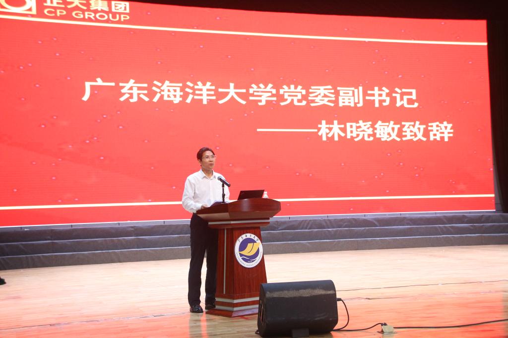 正大集团农牧食品企业广东区副总裁顾昝代表集团致词,他对公司一直积极探索校企联合培养人才的新模式,为正大集团输送了一大批具有社会责任感、富有自主学习能力、实践能力与创新精神的高素质人才,为湛江双百万头生猪全产业链事业的发展提供了强有力的人才支撑表示衷心感谢!阐明了与公司开展深度合作以及“正大全产业链班”开设的目标和作用,并对今后的合作寄予厚望。