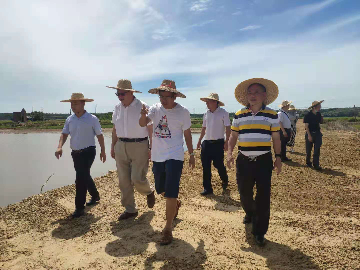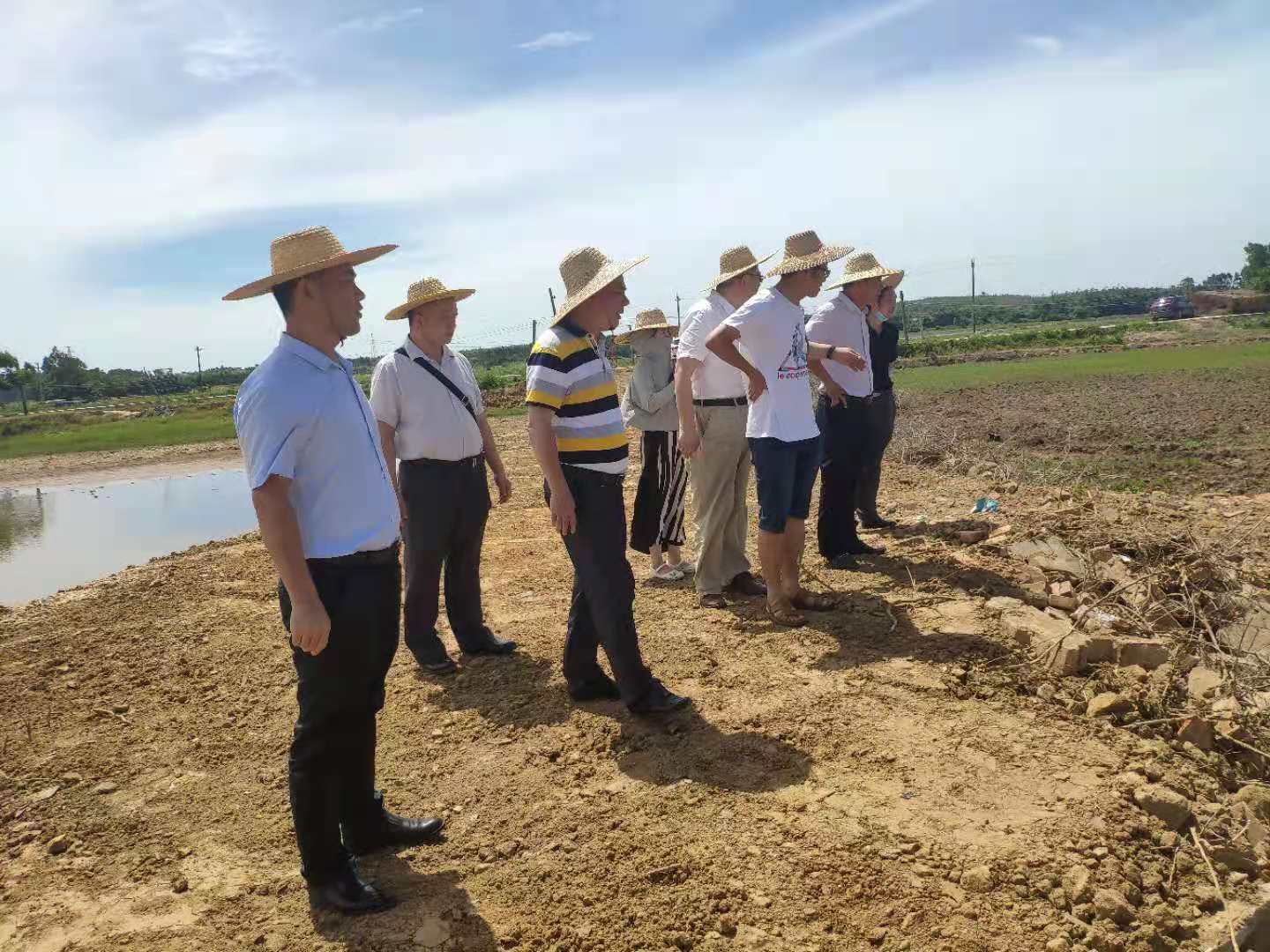 6月14日上午,湛江经济技术开发区农业事务管理局杨志丹科长在公司党委书记邓伟强、经理郑殿峰等的陪同下,前往位于东海岛下寮村的耐盐碱水稻基地考察基地建设情况。