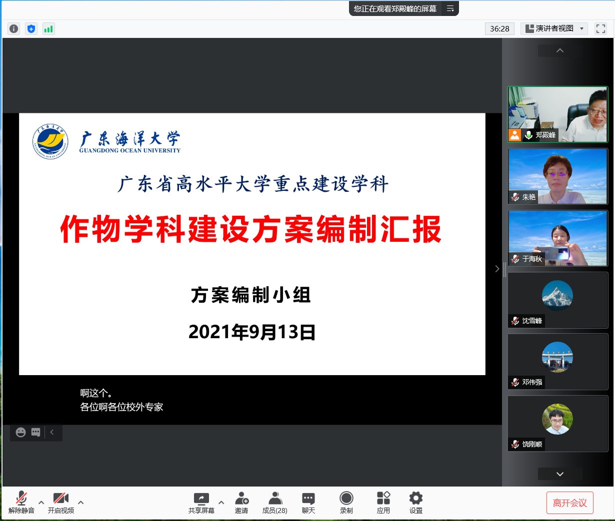 高秀梅副董事长首先介绍了出席本次会议的校外专家和校内职能部门领导,并向参会人员简要介绍了作物学学科近年的发展情况。作物学学科带头人郑殿峰教授从学科基础、建设目标、建设内容、预期标志性成果及保障措施等汇报了作物学团队建设方案。专家组紧紧围绕乡村振兴战略需求和作物学重点团队建设的目标对建设方案提出了中肯的修改建议。与会职能部门领导也提出了修改建议。