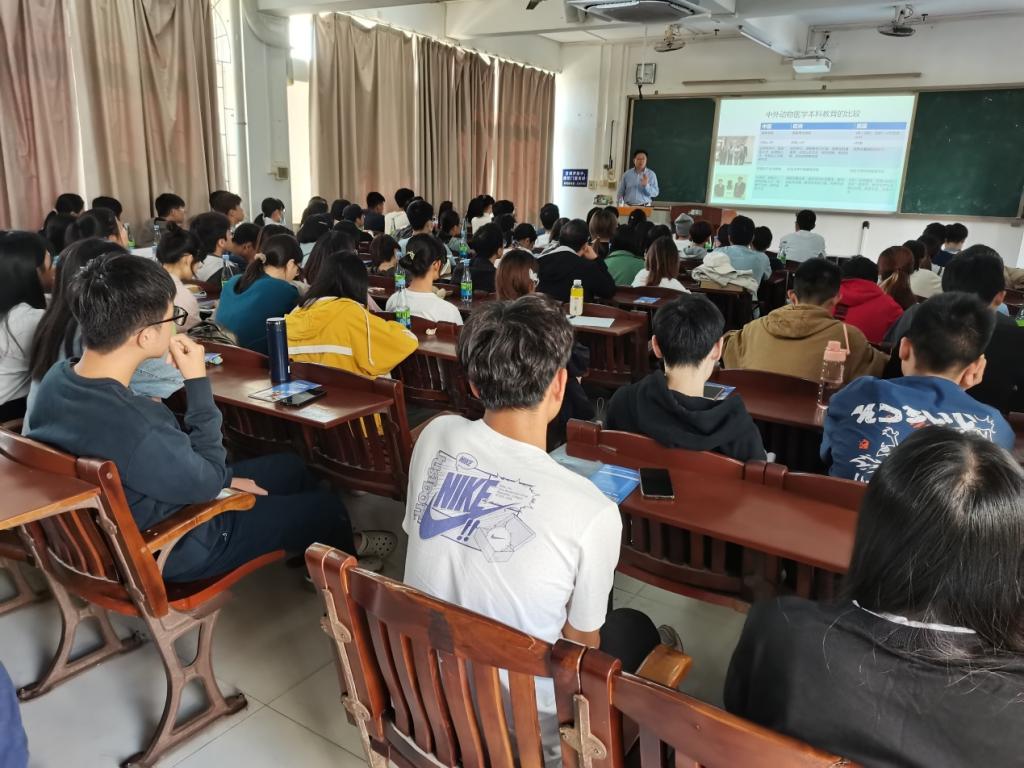 10月24日下午,应公司william威廉中文官网邀请,中国农业大学林德贵教授在钟海楼03028作了题为《小动物专业前景和职业生涯规划》的学术报告。报告会由william威廉中文官网动物医学系主任巨向红教授主持,学院部分教师及研究生、本科生共100余人参加了报告会。