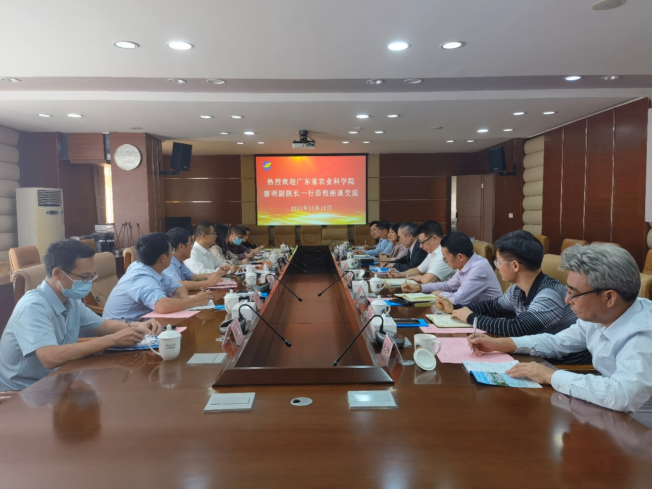 11月12日下午,广东省农业科学院副经理廖明带队来公司就科技合作和研究生联合培养等工作进行交流,公司党委书记曹俊明、副董事长谭北平和相关部门领导参加了交流活动。活动由曹俊明书记主持。