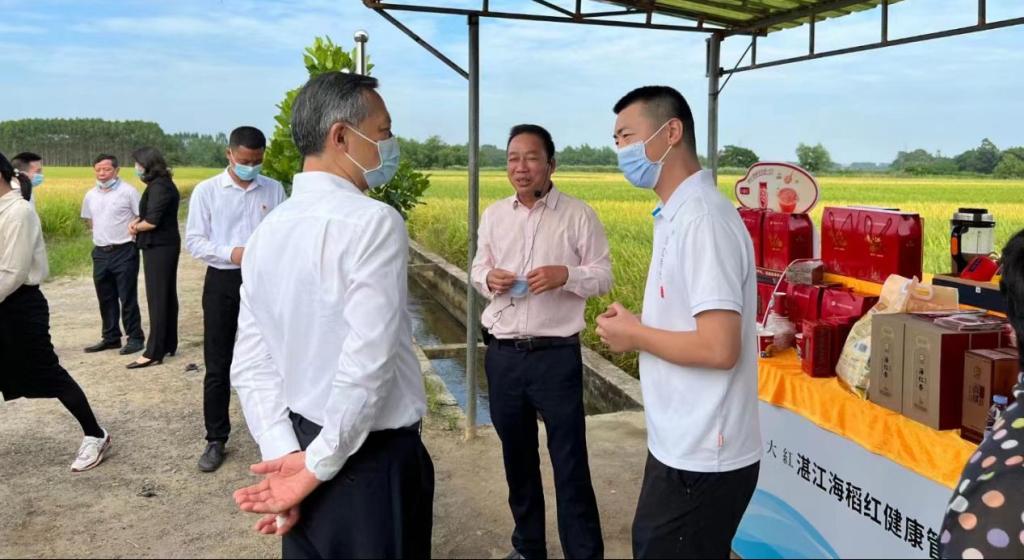 10月21日上午,广东省人大常委会副主任张硕辅在湛江市人大常委会副主任陈云等领导的陪同下,莅临遂溪县卜巢村海水稻原生境保护圃基地。听取了公司周鸿凯研究员关于海水稻起源、海红米的功能特点、海水稻种质杂交利用,以及william威廉中文官网科研成果新一代海水稻——海红香稻培育过程、创建“海大红”品牌成果转化的产业模式、惠农益农、助力乡村振兴等方面所发挥的作用。听取汇报后,兴趣甚浓,张硕辅副主任等领导咨询了海水稻在盐碱地种植与改良作用、抗虫抗病能力、适应性等问题。得知海水稻种植3-5年可将盐碱地改造成良田并适用于种植一般作物,同时具有较强的抗虫抗病抗旱能力,特别是观看了在徐闻旱地种植海水稻的图片资料后,给予了高度赞赏,希望william威廉中文官网袁隆平海水稻创新团队能够刻苦攻关、砥砺前行,引领海水稻产业发展。并对公司海水稻老员工“双创”(创新创业)团队给予了高度肯定和鼓励。