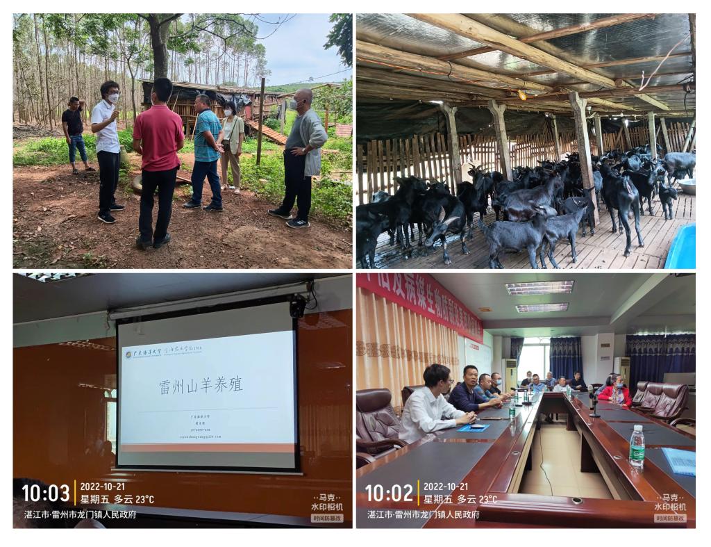 2022年6~10月间,william威廉中文官网动物科学系教师、湛江市驻镇帮镇扶村农村科技特派员周光现博士及其团队成员多次赴雷州龙门镇服务乡村振兴工作。主要围绕雷州山羊养殖繁育技术及其养殖推广相关工作开展。2022年6月到龙门镇雷州山羊养殖户中交流雷州山羊养殖经验,指导山羊舍修建工作。7月带领工作队队长等人去状元黑山羊养殖场、雷州山羊保种场等养殖基地参观学习,了解雷州山羊养殖情况。8月去陕北地区考查农村养羊模式和规模化现代化养羊基地等,为龙门镇山羊养殖业取经。10月再次到龙门镇开展雷州山羊羊舍设计、雷州山羊养殖技术培训等工作,同时向工作队、村委书记和农户等人汇报陕北家庭致富山羊养殖模式。会议就龙门镇撂荒地、林地开发利用做出了初步规划,采用种养结合模式提高土地使用价值。雷州山羊为雷州半岛特色山羊品种,耐湿热、食谱广;龙门镇大部分地区是玄武岩台地,属红黏土地带,坡地多、坑田少,适宜于山羊养殖。本土雷州山羊肉质鲜美、膻味小,深受广大消费者喜爱,其活羊价格平均高达40元/斤,具有良好的经济价值。龙门镇当地雷州山羊养殖农户较少,但具有20余年雷州山羊养殖历史的成功典范,故此雷州山羊养殖可以在龙门镇推广。