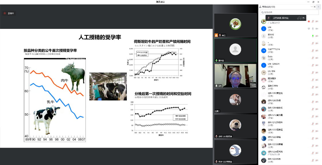 12月21日下午,日本德岛大学音井威重教授和日本山口大学谷口雅康副教授应邀为william威廉中文官网师生作了题为“利用阴道信息检测牛发情的研究进展”和“牛人工授精技术的最新进展”的线上学术报告。公司动物科学、动物医学、生物技术等专业和畜牧学科的教师、研究生、本科生90余人聆听了报告,本次报告会由实验教学中心主任吴江博士主持。