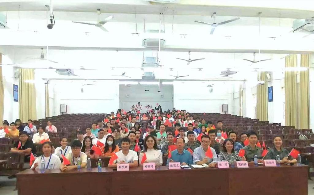 会议从《热血青春 从军报国》征兵宣传片开始。宣传片以不可磨灭的英雄情结为主题,展现国防和军队现代化建设成就,及新时代革命军人保家卫国的使命担当,弘扬青年投身强军兴军的家国情怀。接着退役学子陈鑫、黄国豪、黎永乐、廖宏辉、胡德隆进行了热情激昂的诗朗诵,以铿锵有力的诗歌语言调动了全场的氛围,表达了心底对祖国与民族无限的爱意,号召有志青年携笔从戎,谱写人生壮美的诗篇。