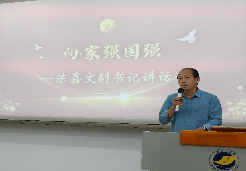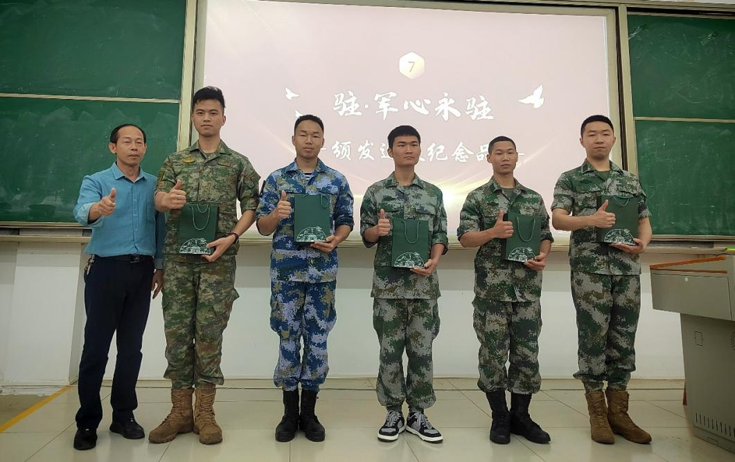 陈嘉文副书记向退伍同学颁发学院纪念品