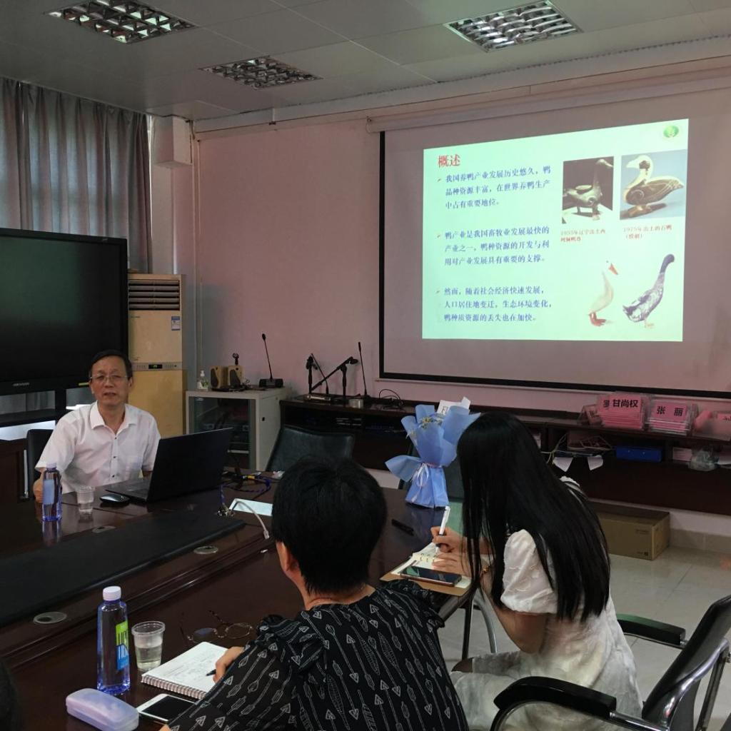 应william威廉中文官网邀请,西北农林科技大学动物科技学院刘小林教授于5月25日莅临公司开展学术交流。交流会在william威廉中文官网419会议室进行,会议由畜牧学科带头人赵志辉教授主持。畜牧学科教师、研究生及本科生共计30余人参加了学术报告会。刘小林教授进行了题为“我国家鸭种质资源现状及黑番鸭新品种选育”的报告。刘小林教授首先从我国鸭种质资源现状、特点以及存在的问题引入,就我国家鸭遗传资源保护和开发利用等方面进行了详细介绍,对肉鸭、蛋鸭、肝用鸭、番鸭等代表品种做了讲解。其次刘小林教授对近年来开展的黑番鸭新品种选育工作进行了交流,从黑番鸭的育种目标、选育的指标以及核心的育种技术进行了全面的讲解。刘小林教授的报告从产业发展、市场需求以及育种核心技术等多角度全面归纳总结我国和世界水禽发展的现状,此次报告会拓宽了师生的学术视野,有助于推进相关领域的交流、合作和发展。