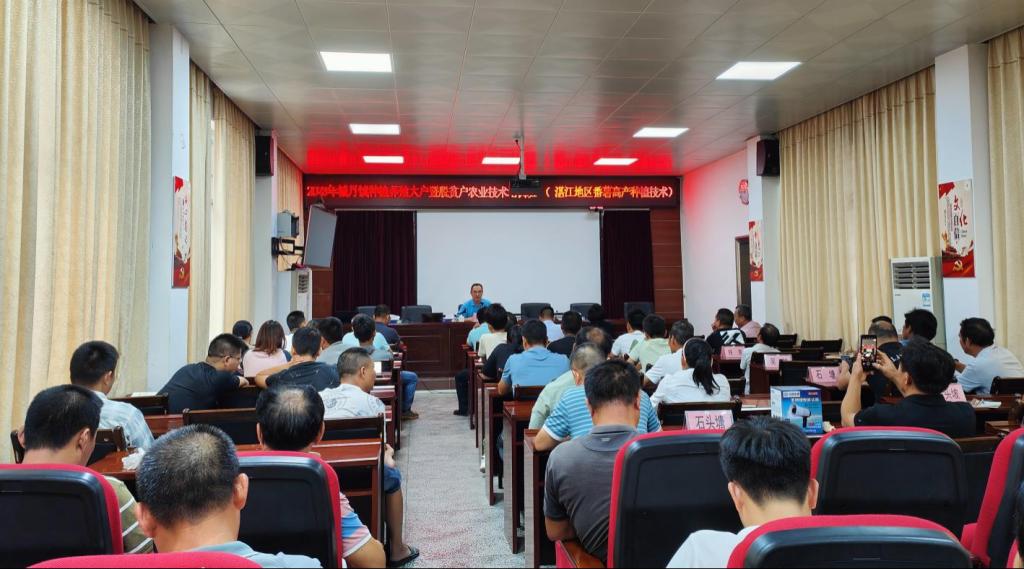 朱宏波副教授讲解“粤西甘薯高产高效栽培技术要点”。一是种植时间,甘薯种植生长期受低温和栽培制度制约,十月前后较为适宜;二是选地和整地,栽培环境要选择土层深厚、排水良好、富含有机质的沙质土壤,同时注重提高土壤肥力,保持土壤酸碱度适宜;三是品种的选择,要选用适应性强、抗病性好、产量高的优良品种,西瓜红较为适合城月种植;四是种养过程中病虫草害防治、滴灌施肥设施及施肥措施。本次课程切实帮助城月镇种植农户科学种植甘薯、规范施肥管理、提升红薯品质、提高红薯产量,促进增收致富。