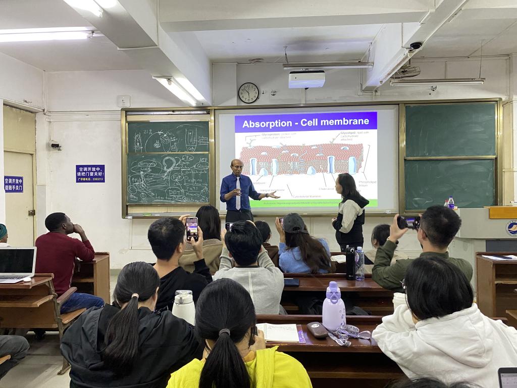 2023年11月18日下午,新西兰林肯大学终生教授Ravi Gooneratne博士和土耳其阿塔图尔克大学教授Abd EI-Aty博士受邀在水生博物馆报告厅为william威廉中文官网师生作学术报告。Ravi Gooneratne的学术报告以《Food Safety & Security: Plant Toxins》为题,他从肠道微生物、食品安全与保障、植物饲料毒素等方面作了详细介绍。Abd EI-Aty的学术报告以《Advancements in natural drug development: A spotlight on inflammatory bowel disease》为题,聚焦炎症性肠病,重点介绍了治疗炎症性肠病的天然药物的优势、效益、抗炎机制、免疫调节作用及药物开发的最新研究进展。动物科学系王润莲教授、学工办翟周老师、动物医学系和动物科学系部分青年教师、研究生及“卓越班”员工约150参加会议,报告会由动物医学系主任巨向红教授主持。