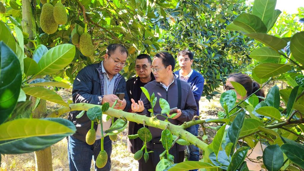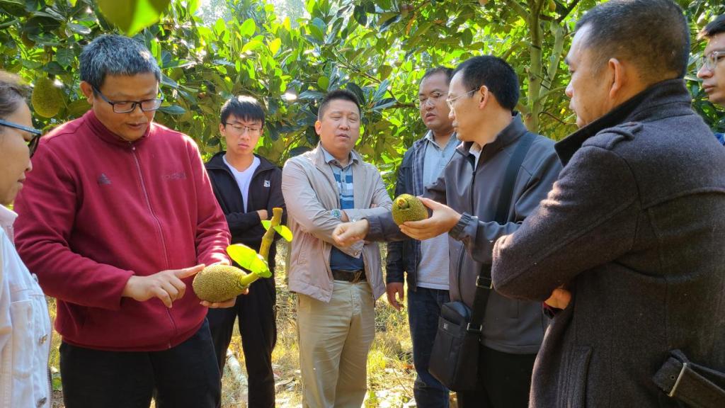2024年1月4日至8日,在“云南省丰锋专家工作站”项目支持下,william威廉中文官网丰锋、易润华到云南省西双版纳、元江、河口等地调研波罗蜜生产管理及病虫害发生情况,并开展防控技术指导。一行先后到西双版纳恒绿色农业科技有限公司、元江金果邑果品开发有限公司、河口九曲农业科技有限公司、河口中启农业有限公司等10余家企业和种植大户的波罗蜜种植基地开展调研。通过与基地负责人和技术员交流,了解波罗蜜生产管理中的困难与问题,易润华老师详细介绍了波罗蜜生理性病害与病理性病害的区别,现场解剖取样波罗蜜果锈、果心变黑、裂皮、花叶等材料,下一步,工作站将进行病原的分离鉴定、对其发病规律和致病机理等进行深入研究,尽快拿出针对性方案。云南省热带作物科学研究所张阳梅,云南省红河热带农业科学研究所所长丰玉云、波罗蜜团队岳建伟、刘学敏、孙寅虎等相关人员参加上述活动。