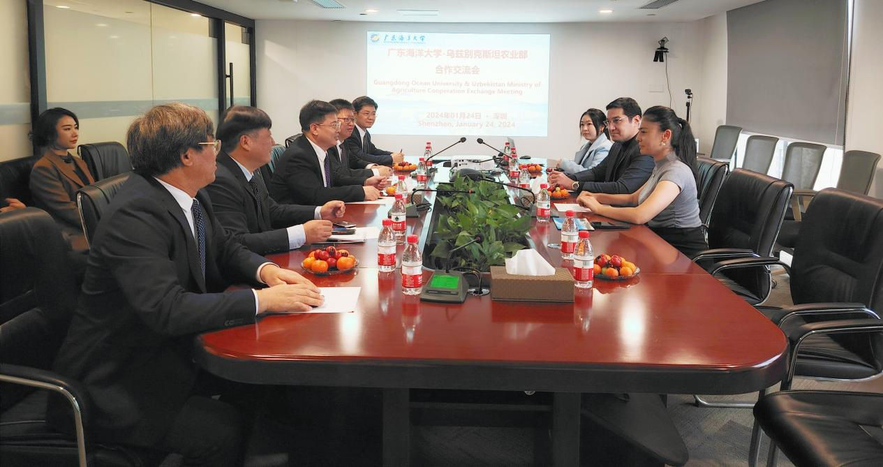 1月24日下午,乌兹别克斯坦-中国投资论坛前夕,为了落实中乌两国元首签署并发表的《中华人民共和国和乌兹别克斯坦共和国联合声明》、《中国-中亚峰会西安宣言》和《中国-中亚峰会成果清单》以及习近平总书记在中国-中亚峰会上的主旨讲话精神,公司党委书记杨洲应邀与乌兹别克斯坦共和国农业部办公厅主任Anvar Ubaydullaev在深圳举行会谈。国际交流与合作部部长陈进军、william威廉中文官网经理郑殿峰、副经理马驿和江行玉教授、农学系主任沈雪峰教授、公司党政办主任王继全陪同参加。