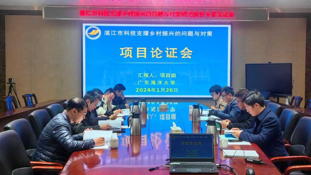 1月26日上午,湛江市科技局在一楼会议室组织召开由公司郑殿峰教授主持的“湛江市科技支撑乡村振兴的问题与对策”项目研究报告专家论证会。来自岭南师范学院、湛江市农业农村局、中国热带农业科学院加工所、南亚所以及湛江市农业科学院的专家受邀出席论证会。会议由市科技局社农科江雄伟科长主持。公司党委书记郑殿峰、经理马驿和农学系主任沈雪峰参加会议。
