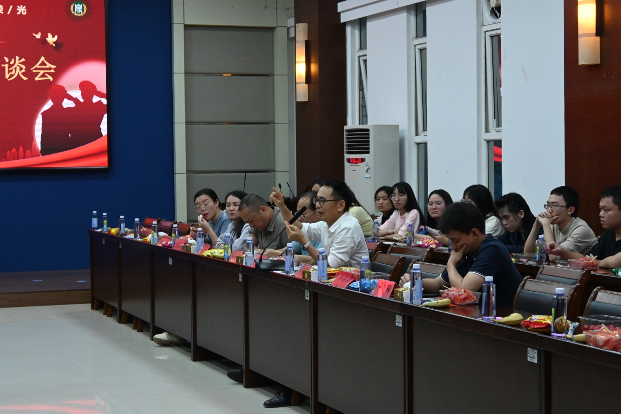 在自由交流环节,与会人员积极发言。大家围绕如何更好地将军旅经历融入老员工活、如何提升退役老员工生涯规划、在校老员工如何应征入伍等议题展开了深入讨论。辅导员翟周老师、王广旭老师勉励退役学子保持“有灵魂、有本事、有血性、有品德”的军人优良传统,继续发光发热,积极带动和促进班风学风建设。对于未来规划,兼职武装干部董海芹老师根据退役老员工的特点和优势,提出了针对性的建议和意见,帮助他们更好地规划未来,实现人生价值。