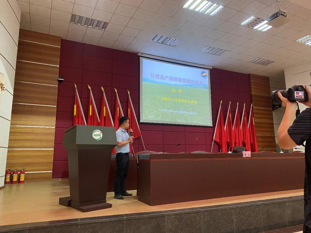 在活动中,杨转英和杨善分别以“数字技术在智慧火龙果种植中的应用”、“甘蔗高产高效轻简栽培技术”为题在湖光农场分讲堂进行授课,并受到区委宣传部常务副部长宋晓燕、湖光农场领导以及与会人员的一致好评,赢得热烈掌声。杨转英副教授简要介绍了火龙果的生物学特性、目前生产管理模式及智慧化管理的优势及前景。杨善博士从甘蔗生产现状介绍中指出当前甘蔗产业“两低两高”的困境,进而深入浅出地介绍“甘蔗高产高效轻简栽培技术”,旨在“降本增效”,为甘蔗产业高质量发展提供技术参考。