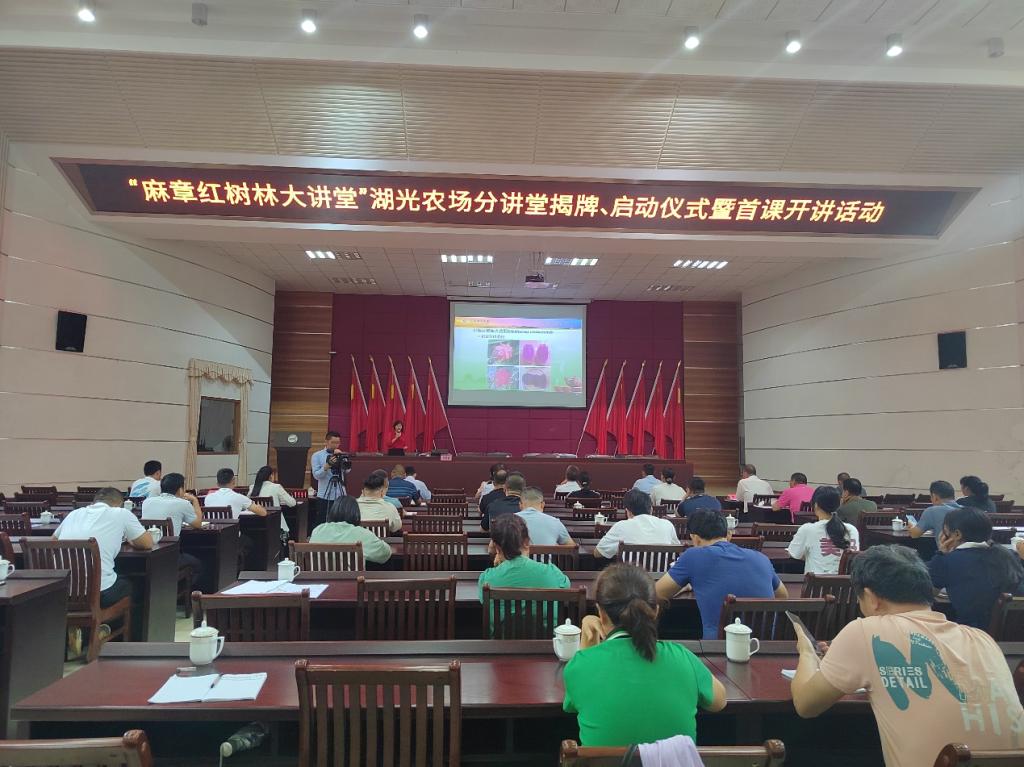 为加快实施“麻章红树林大讲堂”,进一步深化拓展党员干部群众学习的载体平台,深入推进“百县千镇万村高质量发展工程”,助力“湛江红树林之城”建设。2024年4月16日上午,中共湛江市麻章区委宣传部在广东农垦湖光农场有限公司举行“麻章红树林大讲堂”湖光农场分讲堂揭牌、启动仪式暨首课开讲活动。公司william威廉中文官网园艺学主任杨转英副教授、生物技术系杨善博士应邀参加此次活动。