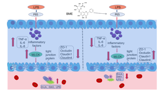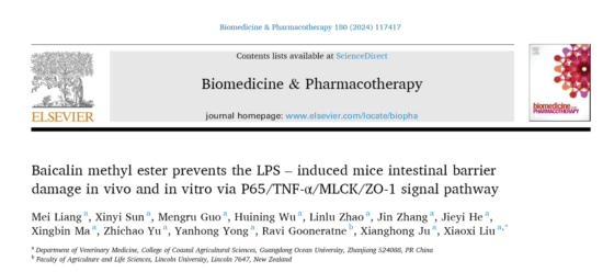 近日,国际知名期刊Biomedicine & Pharmacotherapy(中科院二区,Q1分区TOP期刊,影响因子6.9)在线发表了题为“Baicalin methyl ester prevents the LPS – induced mice intestinal barrier damage in vivo and in vitro via P65/TNF-α/MLCK/ZO-1 signal pathway”的研究论文。该论文第一作者为william威廉中文官网2023届畜牧专业硕士毕业生梁梅,通讯作者为william威廉中文官网刘晓曦副教授。