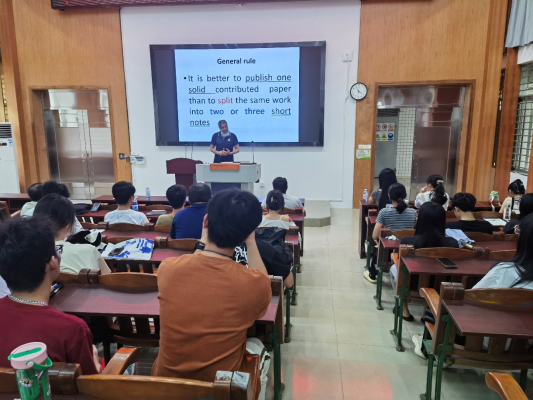 2024年9月26日下午,FAO/WHO联合专家组专家、埃及开罗大学药理学教授Abd El-Aty博士应邀在湖光校区兴农楼109室作学术报告。报告以《Tips on scientific writingof SCI: Editor’s perspective》为题,从作者、审稿人和主编视觉下分享了SCI论文写作的经验。Abd El-Aty教授从SCI论文写作的具体步骤、创新点的凝练与正确表述、投稿注意事项、论文返稿后修稿技巧等方面,详细讲述了科技论文写作和发表的关键点。动物医学系和动物科学系部分青年教师、研究生及“卓越班”员工约150人参加会议,报告会由校科学技术部副部长巨向红教授和学院副经理刘文超教授共同主持。