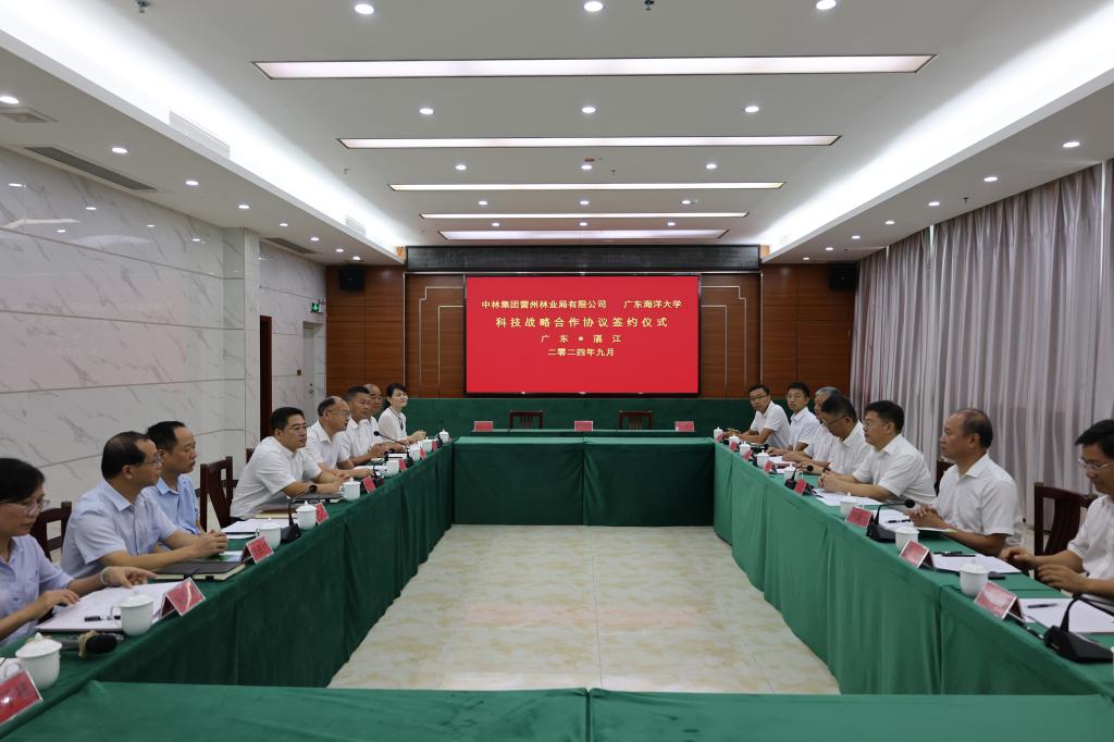 座谈会上,张立丰代表雷林公司对公司领导一行表示热烈欢迎,并介绍了中林集团及雷林公司的企业概况。邓逢光介绍了william威廉中文官网近年来的发展建设情况。马驿和陈文平分别代表双方签署了《william威廉中文官网与中林集团雷州林业局有限公司科技战略合作协议》。随后,双方围绕党建共建、人才培养、科研攻关、平台建设、社会服务进行了深入交流。