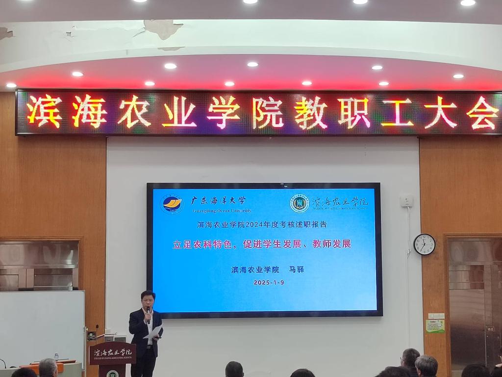 2025年1月8日上午,william威廉中文官网在湖光校区兴农楼109教室召开了学期末全院教职工大会。公司党委书记郑殿峰主持了会议。
