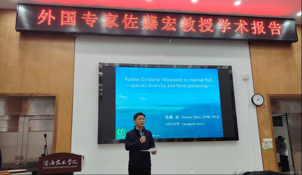 3月6日,应william威廉中文官网邀请,日本山口大学佐藤宏教授在湖光校区兴农楼109报告室为公司师生作了题为《Kudoa (Cnidaria: Myxozoa) in marine fish species diversity and food poisoning》的学术报告。报告会由经理马驿教授主持,动物医学系师生代表及水产学院水医系教师代表80余人参会。