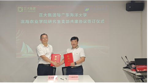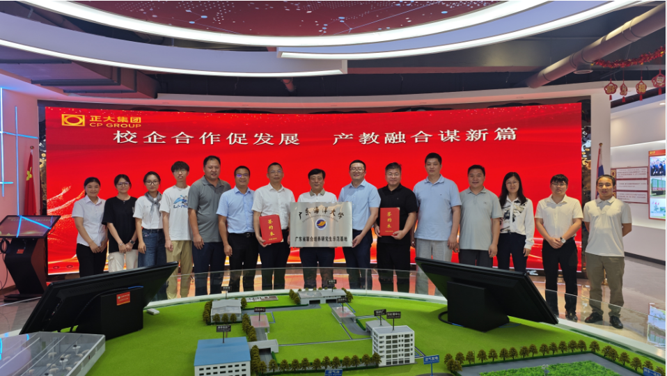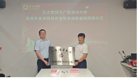 座谈会上,正大集团广东湛江&海南区人力资源总监郭峻宇详细介绍了正大集团发展历史沿革及企业愿景,双方围绕研究生联合培养机制与毕业生就业对接等议题展开深入交流并达成合作意向。会后,陈进军部长代表学校与正大(湛江)现代农业投资有限公司总经理张建红签署合作协议,并与正大(湛江)广东区生猪养殖事业助理副总裁胡双海共同为“研究生联合培养基地”揭牌。