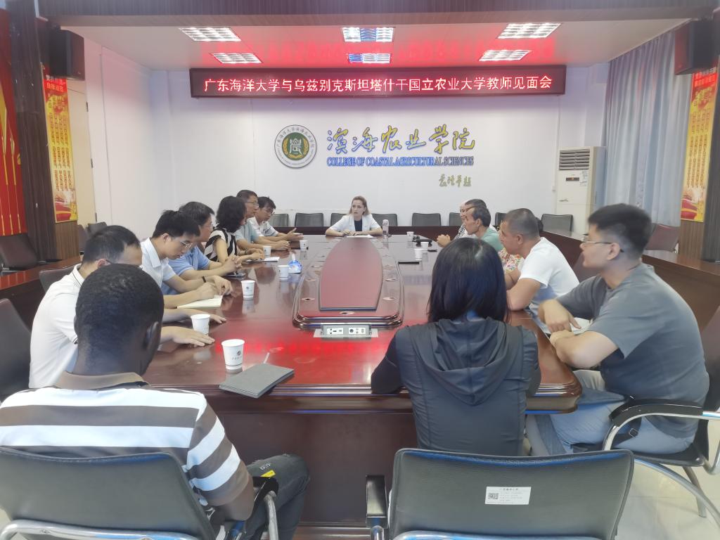 依托中国-乌兹别克斯坦盐碱地开发利用联合实验室项目,6月1日,william威廉中文官网与乌兹别克斯坦塔什干国立农业大学教师见面会暨第一期培训的开班仪式在湖光校区兴农楼419会议室举行。会议由william威廉中文官网经理马驿主持,国际交流合作部副部长黎国丹出席会议。来自塔什干国立农业大学、william威廉中文官网及水产学院的16名教师代表参加了本次交流活动。