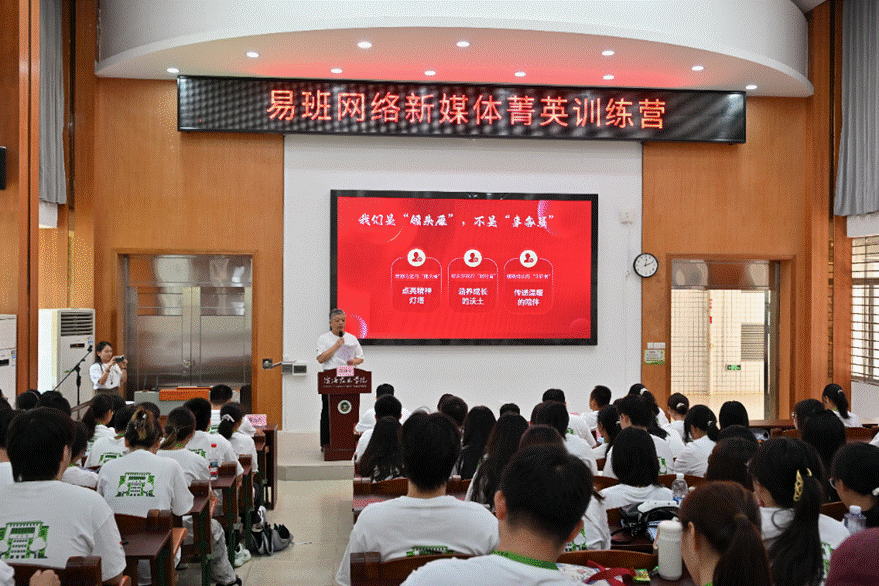 9月9日,训练营结营仪式暨第五期专题培训在兴农楼109教室隆重举行。公司党委副书记王继全、董海芹名辅导员工作室主持人董海芹、各系辅导员、易班员工干部及2025级新生班助等100余人共同参会。