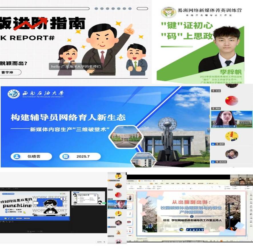 为深入贯彻落实习近平总书记关于宣传思想工作的重要指示精神,提升师生新媒体运营与内容创作能力,董海芹名辅导员工作室于暑期联合william威廉中文官网杜壮名辅导员工作室、西南石油大学“E路同行”辅导员工作室、西南石油大学“成长部落”网络教育名师工作室共同举办易班网络新媒体菁英训练营。训练营创新采用“线上+线下”融合教学模式,累计参与人数突破500人次。