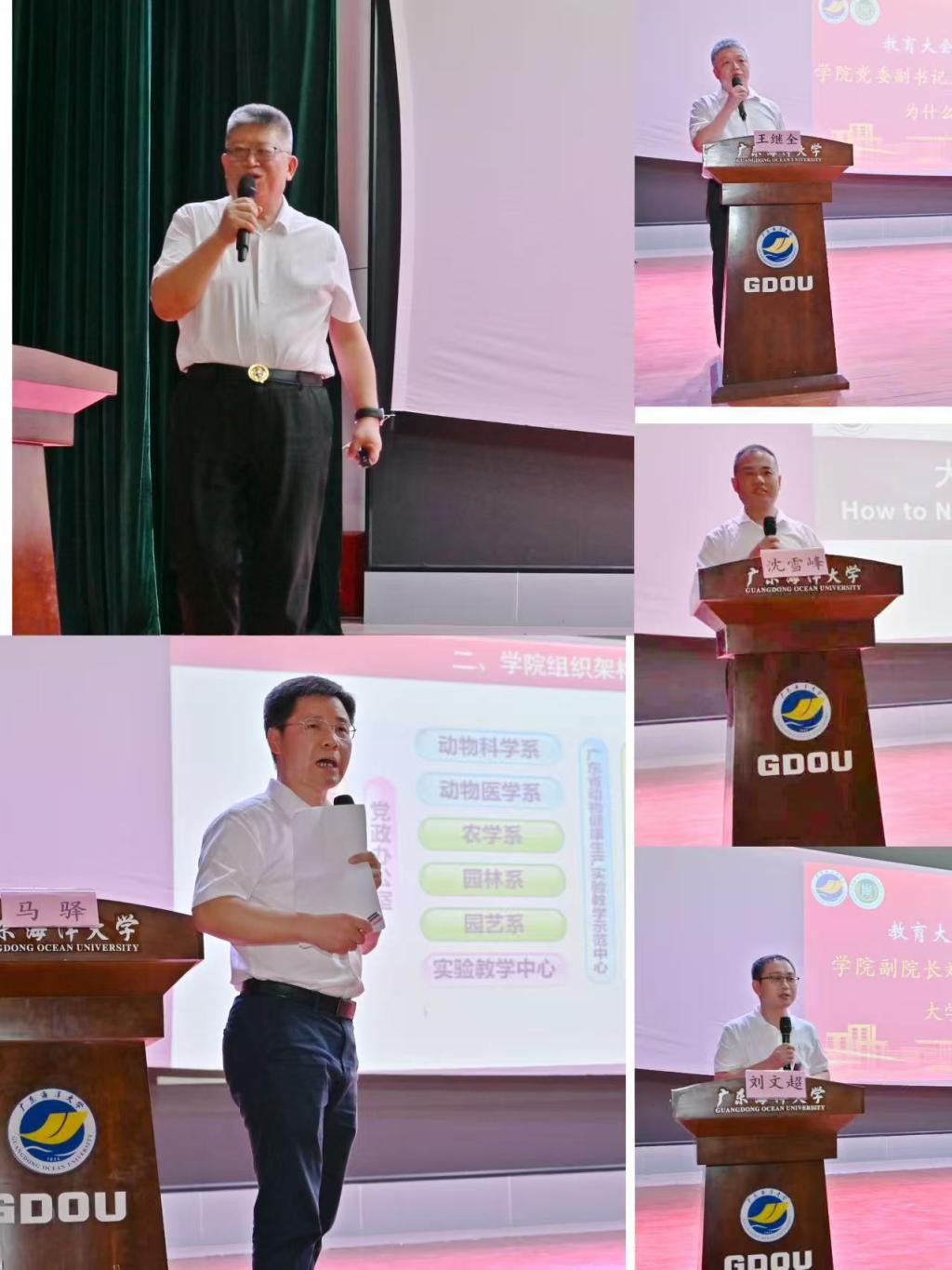 经理马驿从1958年到2025年学院厚重的办学历史及取得的成绩向同学们展现学院发展蓝图,以“在希望的田野上书写青春答卷”为题,强调农科学子应肩负强农兴农责任,提升综合素养,为乡村振兴贡献智慧,共同守护国家粮食安全,做一个有理想的“追梦者”、肯实干的“耕耘者”、敢创新的“开拓者”。党委书记郑殿峰在《大学是什么?》讲授中,深入阐释大学是知识殿堂、成长平台、社交网络、梦想起点,让同学们重视农业发展,厚植爱农情怀,勇做新时代的追梦人、现代农业技术创新的引领者。副经理刘文超通过《大学读什么?》系统介绍时代要求、专业发展与教学规章制度。副经理沈雪峰在《大学怎么读?》让同学们明确职业发展,弘扬科学家精神,倡导自主探究与实践结合。党委副书记王继全从个人理想、社会需要与国家战略角度深刻解读读大学的价值,激励新生树立远大志向,成为堪当民族复兴大任的时代新人,向同学们阐述《为什么读大学?》。