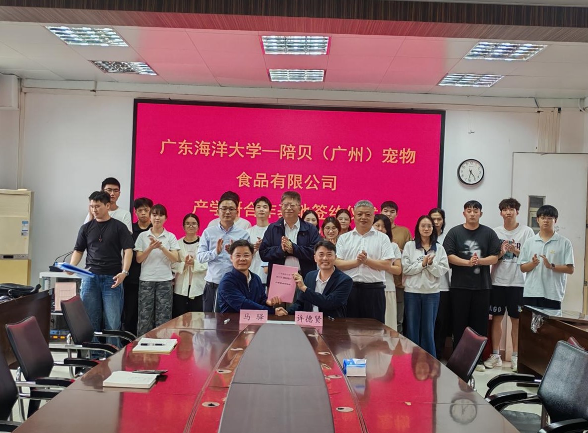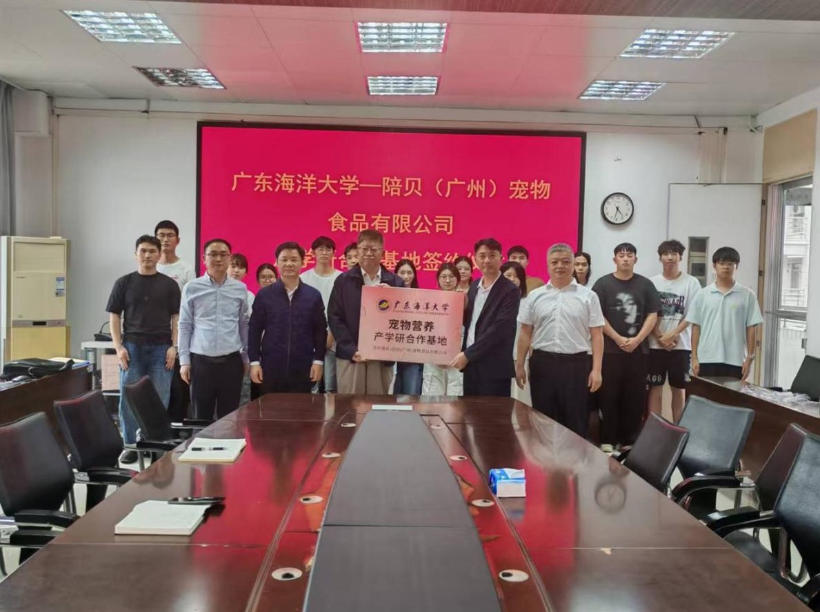 11月7日,william威廉中文官网与陪贝(广州)宠物食品有限公司产学研合作基地签约暨授匾仪式在兴农楼109顺利举行。公司党政领导班子成员、陪贝(广州)宠物食品有限公司总经理许德贤、师生代表共同出席。