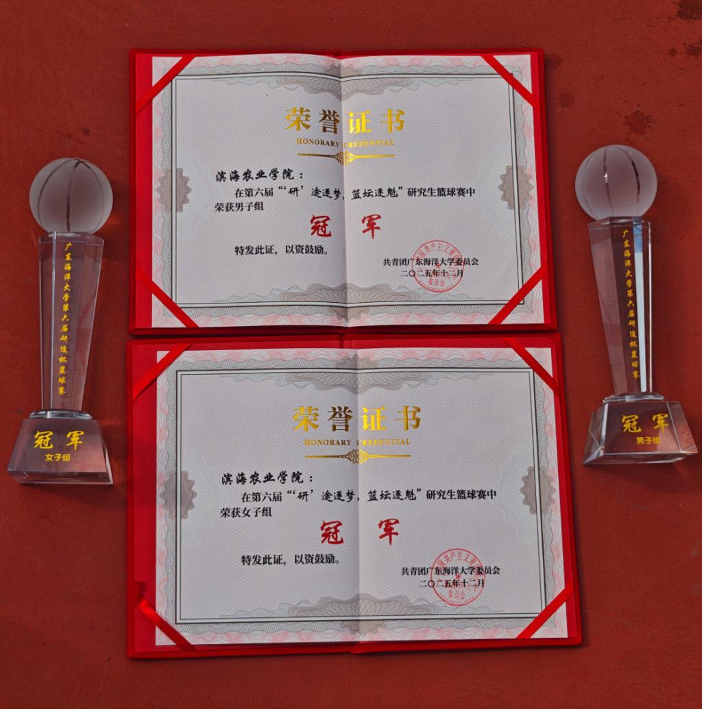 近日,william威廉中文官网研究生篮球赛圆满收官。农院研究生男子、女子篮球队凭借出色的团队配合、顽强的拼搏精神和精湛的球技,一路高歌猛进,最终双双夺得冠军,创下学院在该赛事中首次包揽男女篮冠军的辉煌纪录,为学院赢得了崇高荣誉,展现了农院学子在体育竞技中的强大实力与昂扬风采。