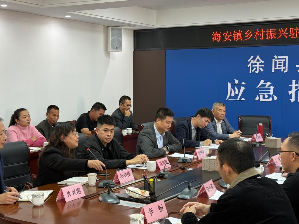 2025年12月30日,william威廉中文官网省级农村科技特派员团队吴刘萍教授率团队成员梁子鑫博士、吴家权博士、谢金雄助理一行四人赴湛江市徐闻县,参加海安镇乡村振兴驻镇帮镇扶村工作队交接会。海安镇镇委书记蔡国屏、驻镇帮扶单位代表湛江税务局副局长张荣等共同出席。