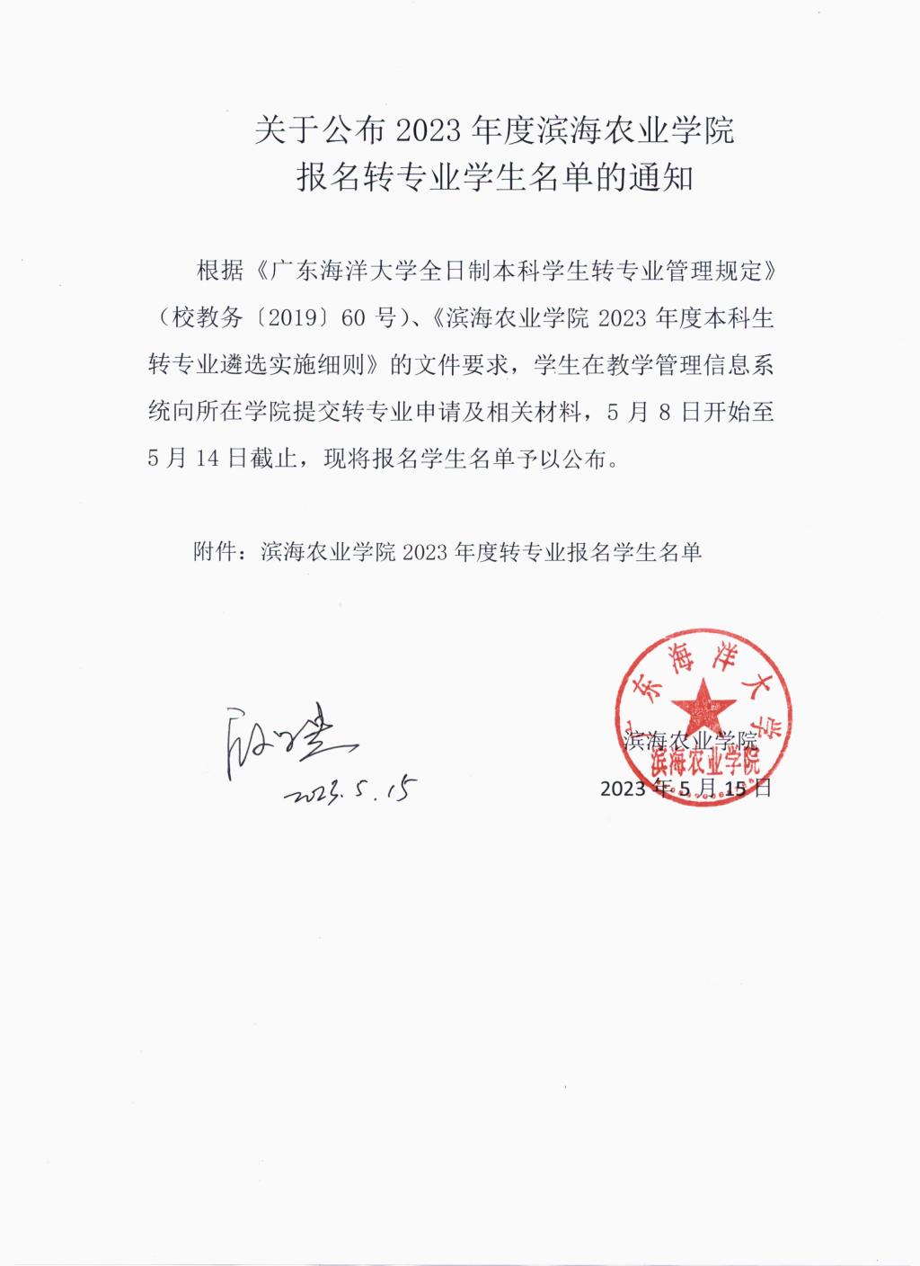 关于公布2023年度william威廉中文官网报名转专业员工名单的通知