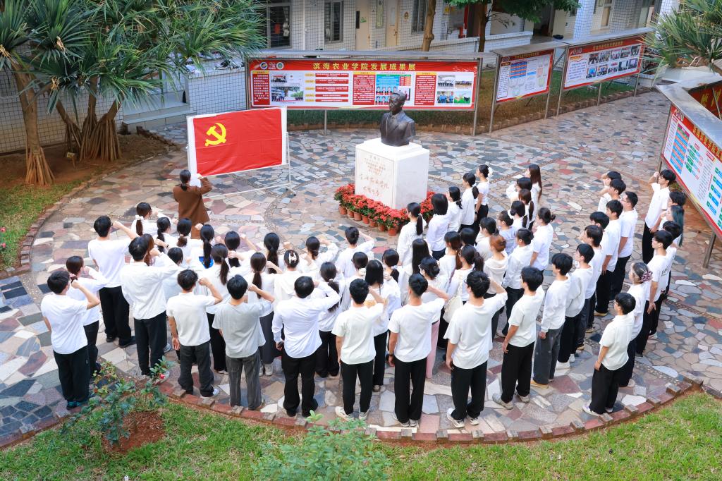 随后,正式党员代表园艺卓越1221班王莉丹同志发言。她表示作为党员要以理论学习为基石,立足岗位实践,主动服务群众,将入党誓词转化为实际行动,展现新时代青年党员的责任担当。预备党员代表硕042309班杨崇城同志表示,作为风景园林与滨海植物研究方向的研究生,将以此次宣誓为新起点,潜心学习党的创新理论,扎根科研一线攻坚耐盐碱植物开发与生态培育,将专业所学主动融入乡村振兴实践。